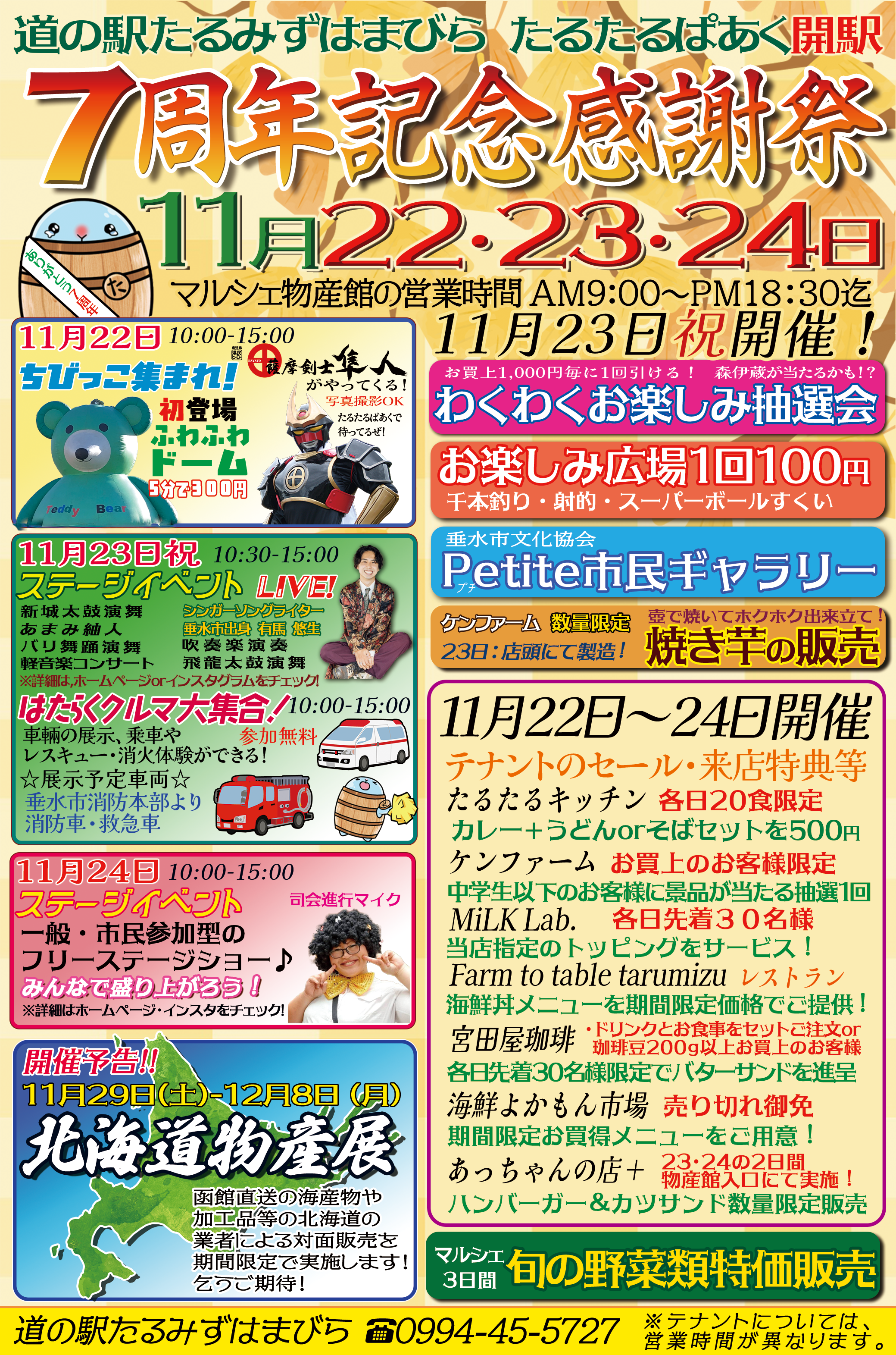 11月22・23・24日は「たるたるぱあく開駅7周年記念感謝祭」開催!!